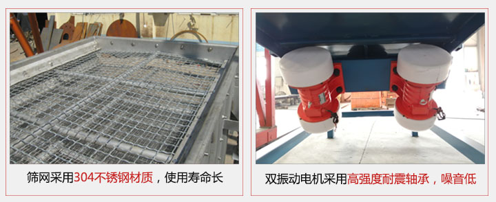 2,双振动电机采用高强度耐震铸铁轴承,使用寿命长,噪音低,易保养。