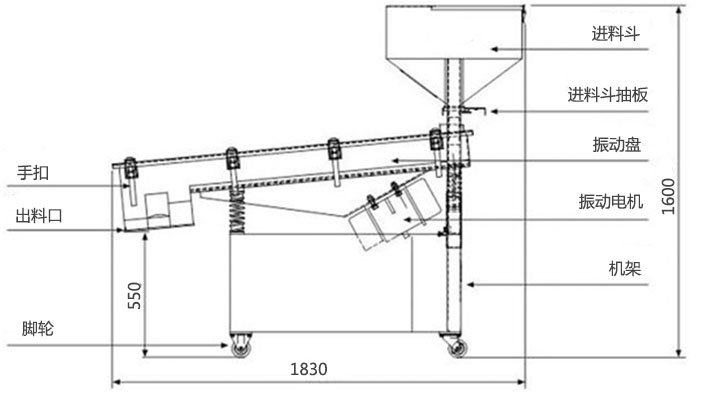 筛料机底部的双振动电机使筛面上的物料受其激振力的作用,向出料口方向跳跃式直线运动,小于筛孔的物料落到下层,径出料口排出。