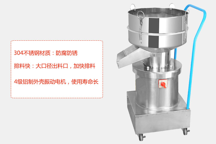 3,无上该设计,易于观察筛面,出料口可以360度自由旋转,筛网更换,清理方便。